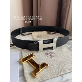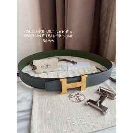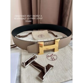 Hermes Constance Belt Gold Buckle Reversible Leather Strap 32mm Gray