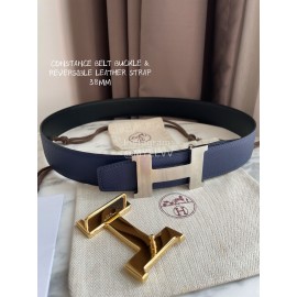 Hermes Constance Belt Buckle Reversible Leather Strap 38mm Blue
