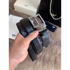 Montblanc Black Litchi Grain Cowhide Gun Color Pin Buckle 35mm Belt