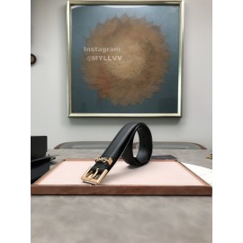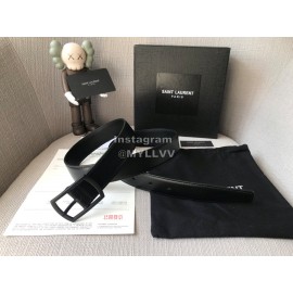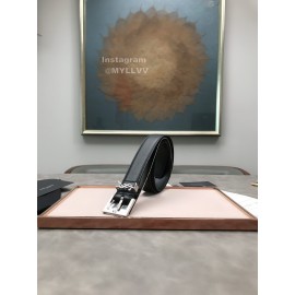 Ysl Calf Leather Love Shape Needle Copper Buckle 30mm Belt Black