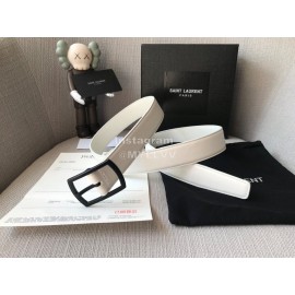 Ysl Plain Calf Vintage Black Pin Buckle 30mm Belt White