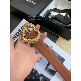 Ysl Calf Leather Love Shape Needle Copper Buckle 30mm Belt Brown