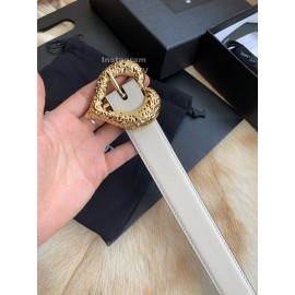 Ysl Calf Leather Love Shape Needle Copper Buckle 30mm Belt White