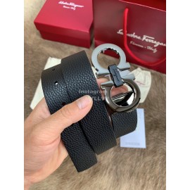 Ferragamo New Cowhide Electroplated Gun Color Buckle 35mm Belt For Men