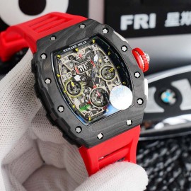 Richard Mille Carbon Fiber Case Red Rubber Strap Watch