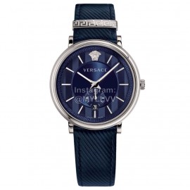 Versace men's watch model verd00118 dial diameter 43mm Swiss quartz movement adopts sapphire glass mirror dial Central 3D Medusa head portrait Greek loop calfskin strap blue texture printing with butterfly buckle life waterproof 50mImportants:Includings: a Serial Number, Care Booklets, A Cotton dust Bag, Certificate Cards and A Gift Box.Please no w..