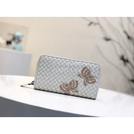 Bottega Veneta Fashionable Lambskin Knitted Butterfly Zipper Purse White 114078