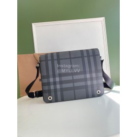 Burberry New Soft Plaid Leather Messenger Bag Gray