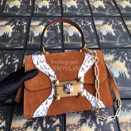 Gucci Wolf Head Snake Pattern Frosted Handbag Brown 497996