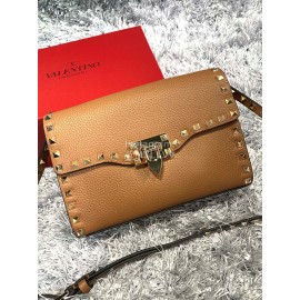 Valentino Fashion Leather Flip Messenger Bag Apricot 0181