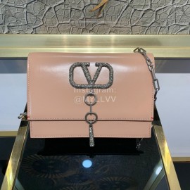 Valentino Fashion Leather Flip Messenger Bag Pink 0181
