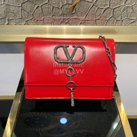 Valentino Fashion Leather Flip Messenger Bag Red 0181