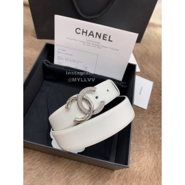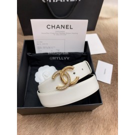 Chanel White Calf Leather Silver Diamond Buckle 30mm Belts For Women