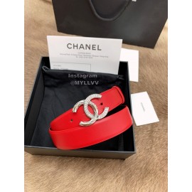 Chanel Red Calf Leather Silver Diamond Buckle 30mm Belts For Women