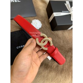 Chanel Red Calf Leather Fashion Buckle 30mm Belts For Women