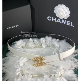 Chanel Fashion Calf Leather Pearl Gold Buckle 20mm Belts For Women White