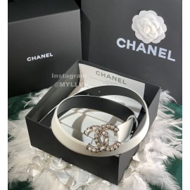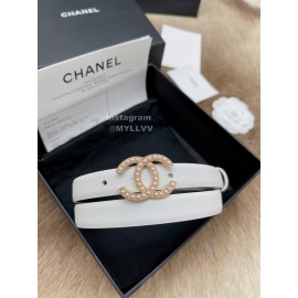 Chanel Fashion Calf Leather Silver Diamond Buckle 20mm Belts For Women White
