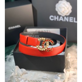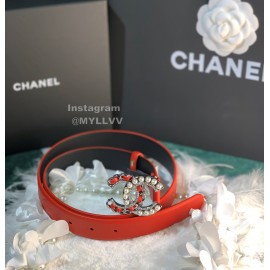 Chanel Fashion Calf Leather Pearl Gold Buckle 20mm Belts For Women Red