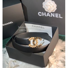 Chanel Fashion Calf Leather Pearl Silver Buckle 20mm Belts For Women Black