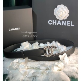 Chanel Fashion Calf Leather Silver Diamond Buckle 20mm Belts For Women Black