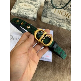 Dior Vintage Gold Buckle Letter Logo 20mm Embroidered Canvas Belt Green