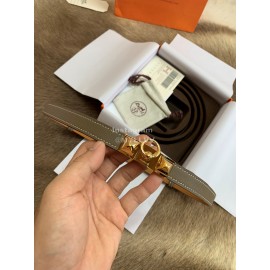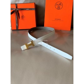 Hermes Calf Leather Stainless Steel Gold Buckle 24mm Belt For Women White