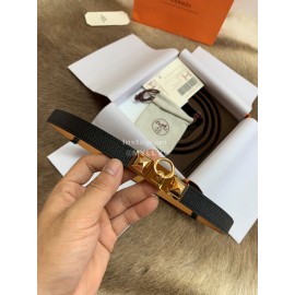 Hermes Calf Leather Gold Plated Steel Pin Buckle 15mm Belt For Women Black