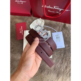 Ferragamo New Calf Leather Silver Buckle 25mm Belt For Women Wine Red