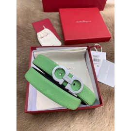 Ferragamo New Calf Leather Silver Buckle 25mm Belt For Women Green