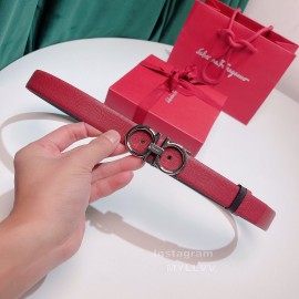 Ferragamo New Wine Red Calf Leather Silver Buckle 25mm Belt For Women