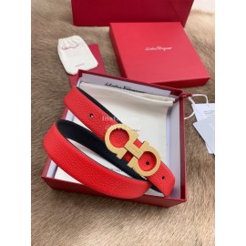 Ferragamo New Red Calf Leather Gold Buckle 25mm Belt For Women