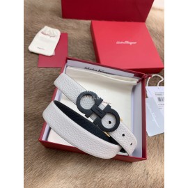 Ferragamo New Cowhide Pure Copper Buckle 25mm Belt For Women White