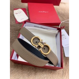 Ferragamo New Calf Leather Silver Buckle 25mm Belt For Women Coffee