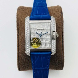 Cartier Eg Factory Tank Anglaise Diamond Dial Blue Strap Watch