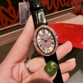 Cartier 316l Fine Steel Case Diamond Dial Cowhide Strap Watch