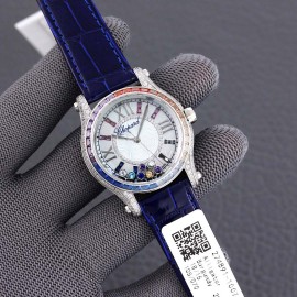 Chopard Happy Sport Series Colorful Diamond Leather Strap Watch Navy