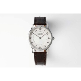 Slim D’Hermes Baton Pointer Leather Strap Watch Coffee