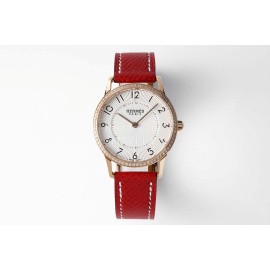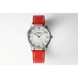 Slim D’Hermes Baton Pointer Red Leather Strap Watch