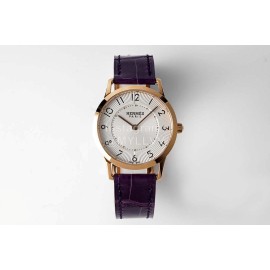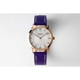Slim D’Hermes Baton Pointer Leather Strap Watch Purple