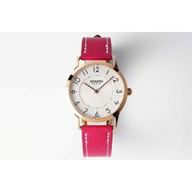 Slim D’Hermes Baton Pointer Leather Strap Watch Rose Red