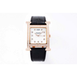 Bv factory Hermes heure h big three pin series It was born in 1996 under the promotion of designer Philippe mouquet, which is a new permanent mark of Hermes for a long time 1. Case size: 30.5x30 5MM 2. Case material: 316 fine steel 3. Dial material: mother of pearl shell surface 4. Mirror material: anti glare sapphire crystal glass 5 strap material..