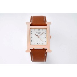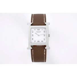 Hermes Bv Factory Heure H Coffee Leather Strap Square Dial Watch