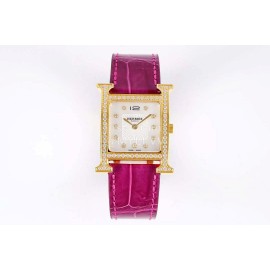Bv factory Hermes heure h diamond series It was born in 1996 under the promotion of designer Philippe mouquet, which is a new permanent mark of Hermes for a long time 1. Case size: 21x21mm 2. Case material: 316 fine steel (inlaid with 116 Austrian Czech diamonds) 3. Dial material: mother of pearl shell surface 4. Mirror material: anti glare sapphir..