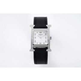 Hermes Bv Factory Diamond Square Dial Leather Strap Watch