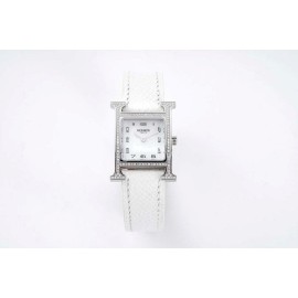 Hermes Bv Factory Diamond Square Dial Leather Strap Watch White