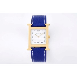Hermes Bv Factory Heure H Leather Strap Square Dial Watch Blue