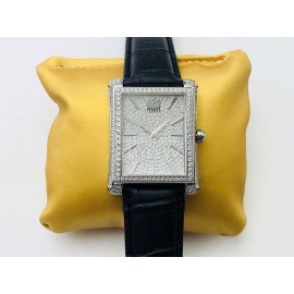 Piaget Limelight Sapphire Crystal Glass Square Diamond White Strap Watch