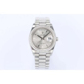 Rolex New 36mm Silver Dial Steel Strap Diamond Watch