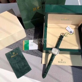 Rolex Green Leather Strap Square Dial Watch