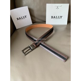 Bally New Calf Leather Stripe Pin Buckle 34mm Belt Gray